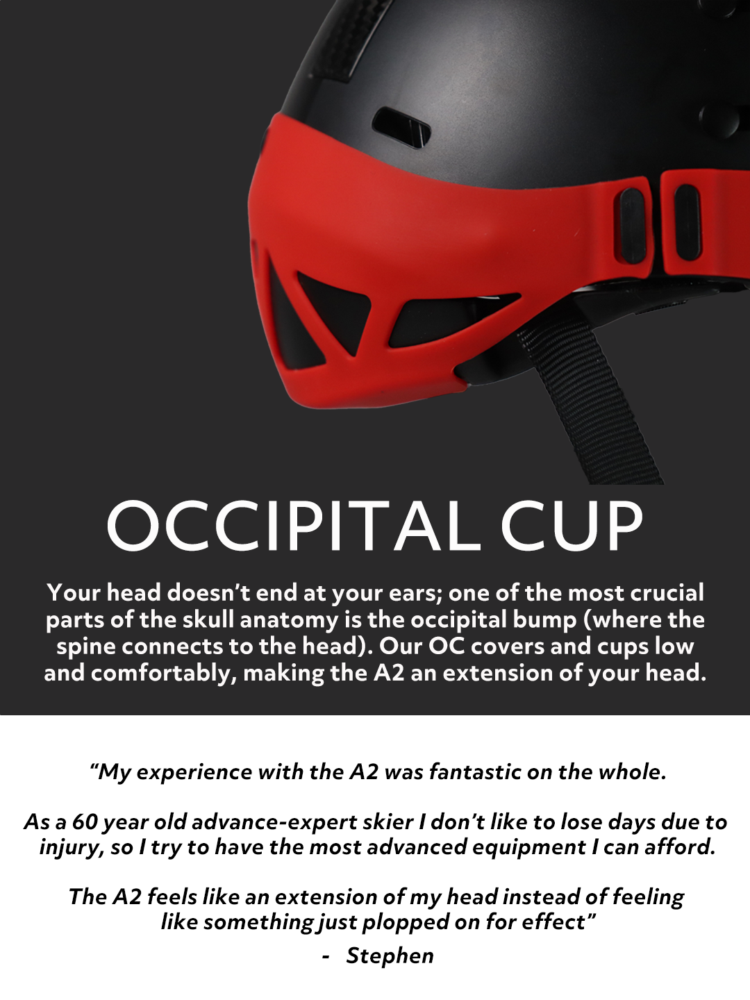 It also fits low, snug, comfortably, and fits every headshape perfectly. Some of the greatest in the world have been using the A2 and they forget it’s even there - until they need it most.